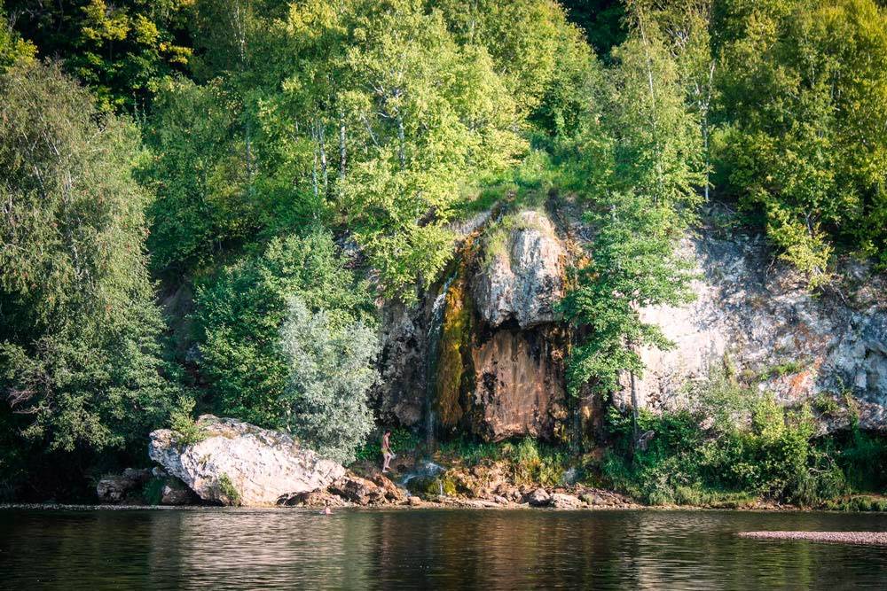 Водопад находится в 90 километрах от Уфы на известняковой скале под названием Плакучий камень. Вода падает с шестиметровой высоты в реку Инзер. Летом, когда сильного потока нет, растекается по скале, создавая зеркальную гладь. Такую красоту просто невозможно не оценить. Иногда водопад за небольшие размеры называют «Мужские слёзы». В 1965 году водный объект вошёл в список памятников природы Башкортостана.