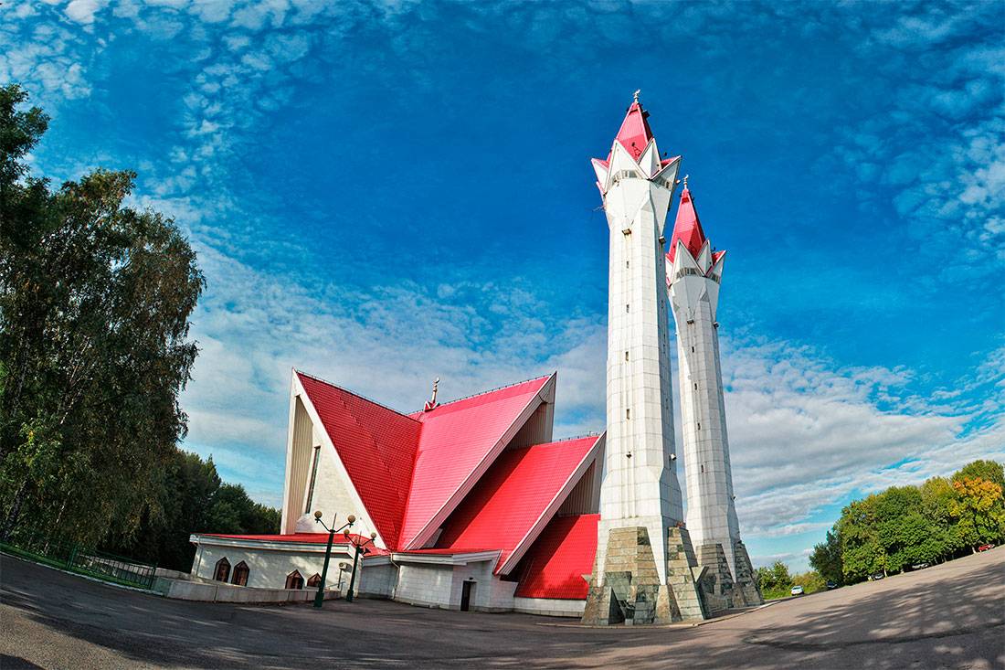 Высокие белоснежные минареты высотой 52 м., с алыми бутонами тюльпанов наверху, просматриваются из разных уголков Уфы. Архитектурное решение здания основано на одном из символов мусульманского мира — бутоне тюльпана.