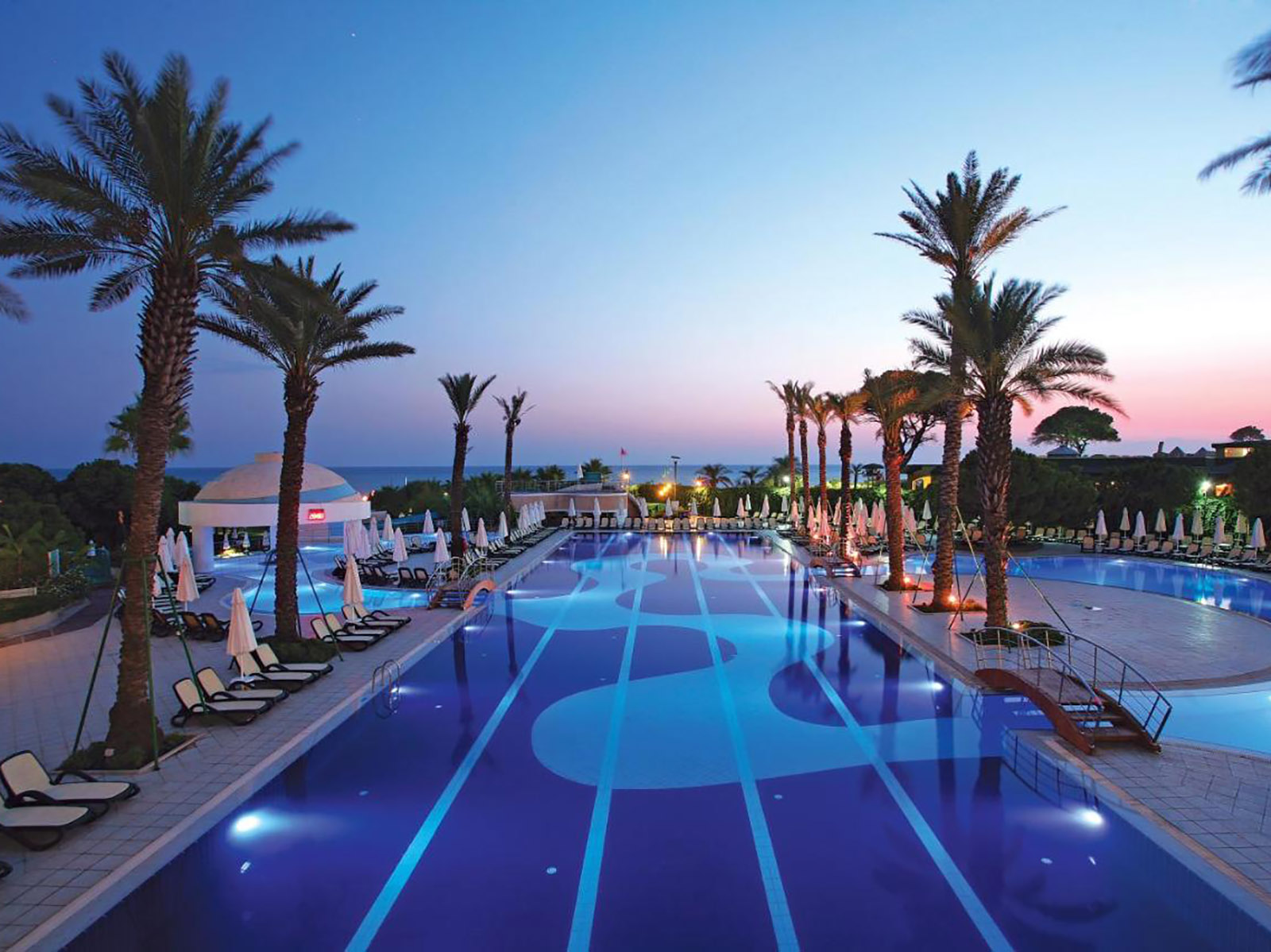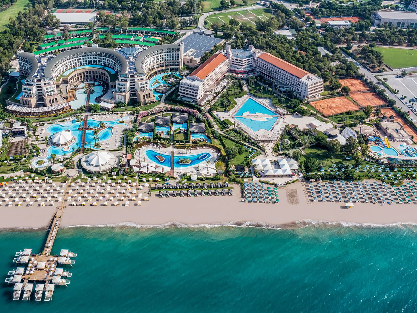 Отель расположен на берегу Средиземного моря в турецком курортном городе Белек. Этот 5-звездочный комплекс предоставляет своим гостям широкий спектр услуг и удобств, включая роскошный SPA-центр, аквапарк, бассейны, гольф-поле и рестораны с различными кухнями мира.