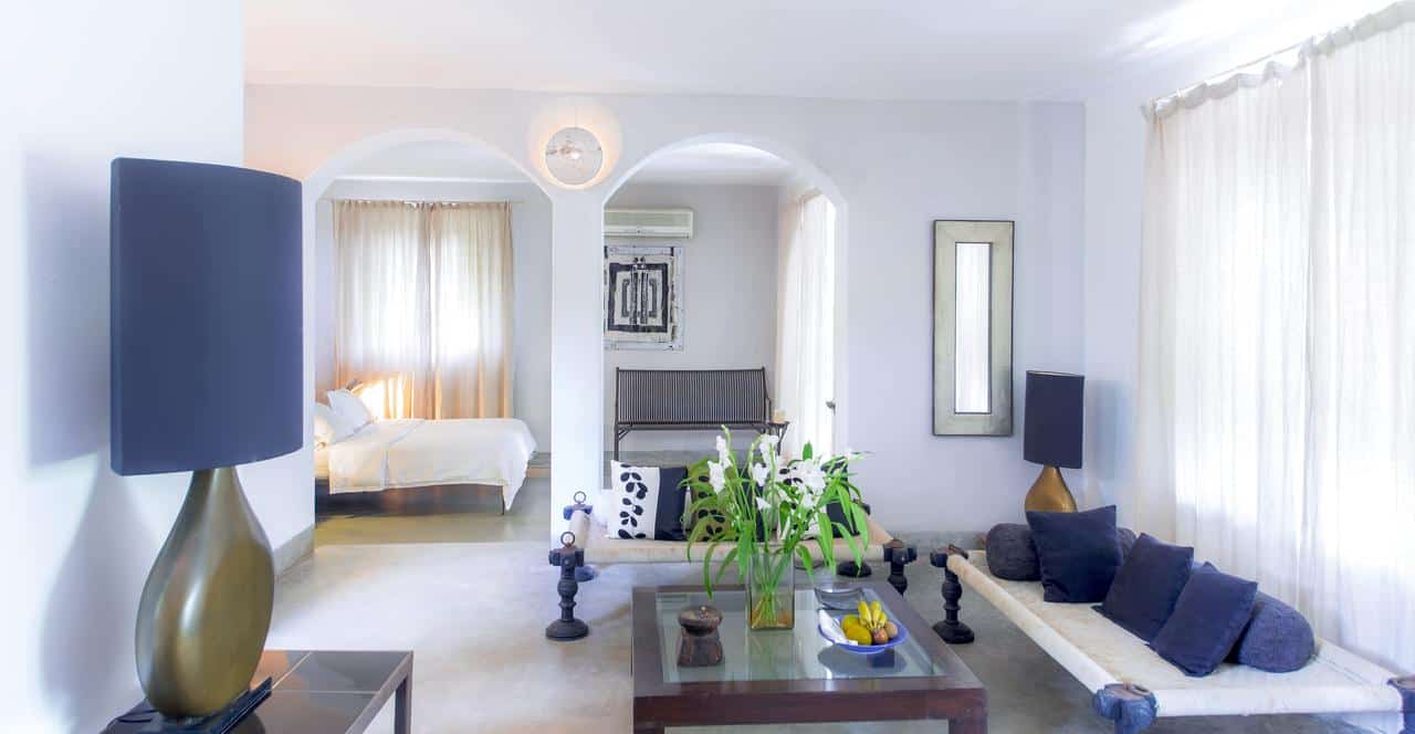 Одиннадцать уникальных романтических комнат, каждая из которых воплощает фантазии с космической темой – Луна, Звезда, Воздух, имеют небольшую террасу и большие панорамные окна с видом на сад. Ни одна из них не соответствует правильной форме, интерьер номеров представляет собой эклектичное сочетание этнической мебели и колониального антиквариата. Эксцентричные ванные комнаты открытого типа вымощены яркой мозаикой, оснащены первоклассным оборудованием и аксессуарами, продуманными дополнениями.