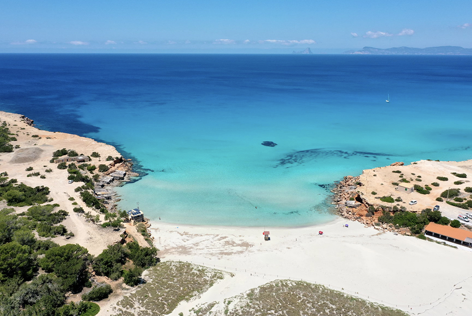 Тихая живописная Cala Saona укрыта от ветров в одноименном заливе на западном побережье Форментеры, в заповедной зоне, купающейся в сосновых лесах. Благодаря своему расположению, это единственная точка острова, где можно любоваться закатом солнца, а также видами на скалу Эс-Верда, которая, по легенде, является не чем иным, как вершиной потерянной Атлантиды. Другой особенностью пейзажа являются рыбацкие домики, рассыпанные по склонам золотистых утесов. Несмотря на миниатюрные размеры, в бухте есть все для комфорта отдыхающих: деревянные настилы, бары и отели, плавный спуск в море, чистейший песок и прозрачное море.