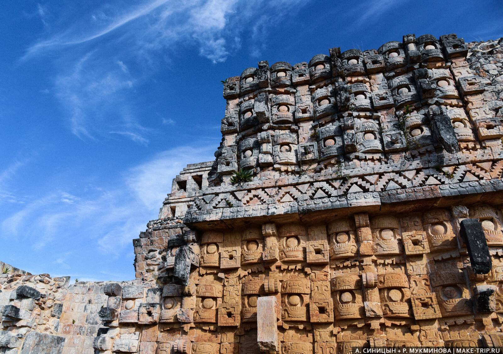 Самое прекрасное в Кабахе — это «Дворец масок», стены которого украшены множеством каменных масок длинноносого божества Чака. Все стены просто замостили этими масками, что очень необычно для архитектуры майя. Такой красоты больше нигде нет!