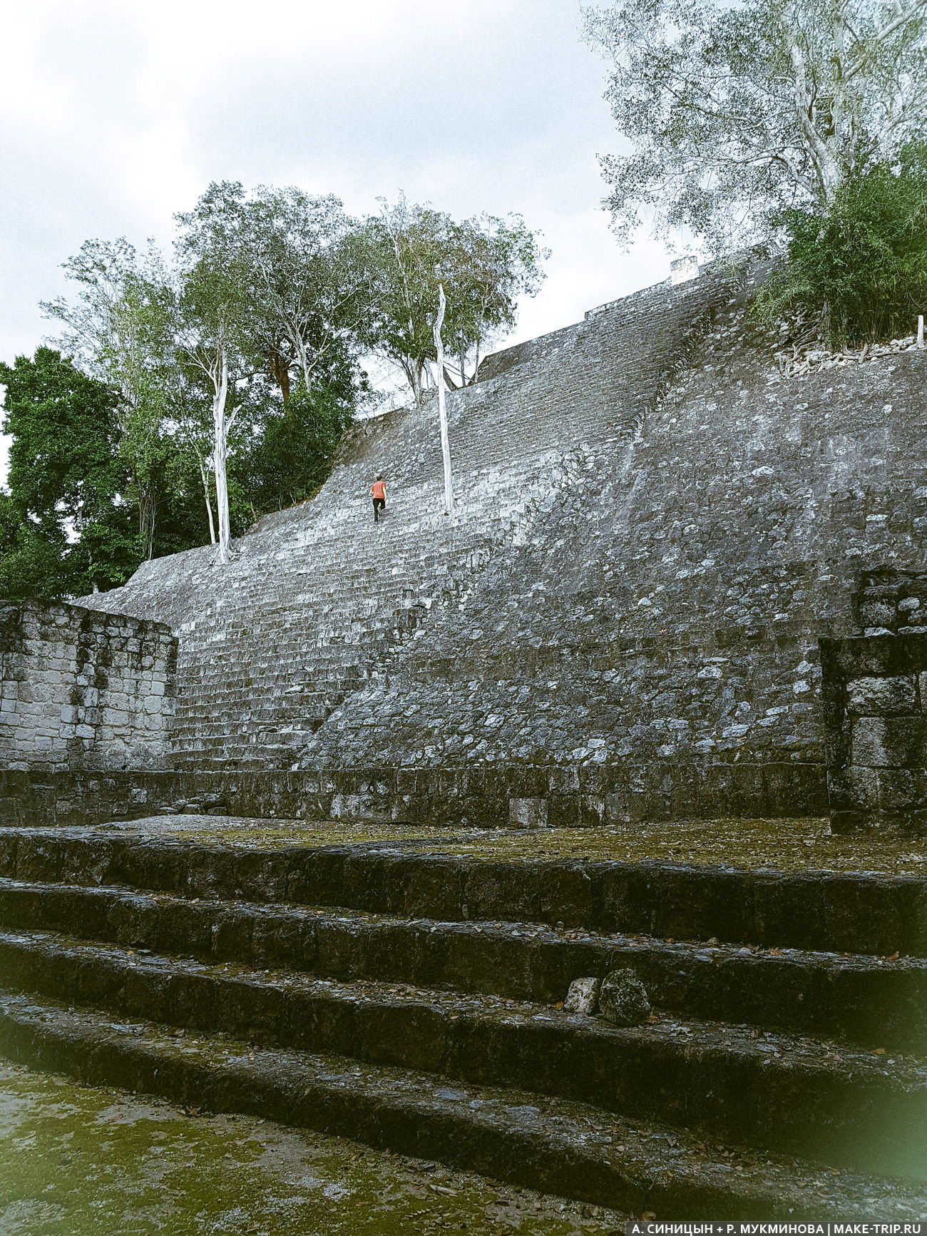 Поднимаюсь на пирамиду майя в Калакмуле.