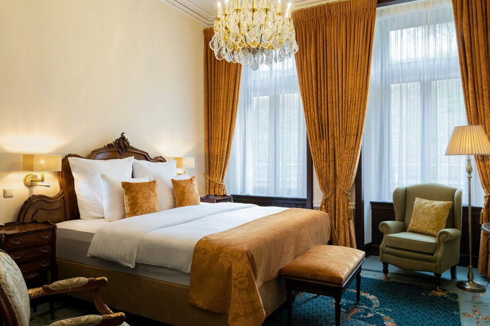 Если этого недостаточно, этот загородный замок 19-го века был тщательно восстановлен до прежней славы. Построенные в популярном романтическом стиле того времени, 50 номеров и люксов отеля были перепроектированы с учетом прошлого. Кровати с удобными матрасами и деревянными изголовьями, а комнаты обставлены антикварными шкафами, стульями и столами, а затем украшены оригинальными портретами немецкой знати.