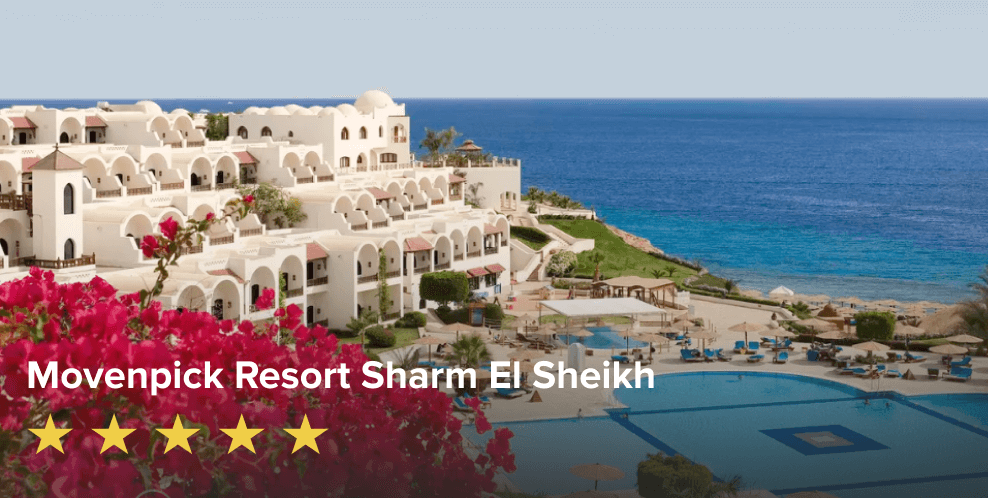 Изысканный отель выдержан в стиле арабских дворцов. Лаконичные интерьеры, своды потолков, резные дверцы шкафов и даже светильники — всё вокруг подчёркивает высокий статус Movenpick Resort Sharm El Sheikh. Всего в 50 метрах собственный песчаный и бар, который работает до заката. А у берега находится один из красивейших коралловых рифов. Поэтому не заняться снорклингом будет преступлением. Кроме знакомства с подводным миров, в отеле можно расслабиться и прийти в тонус в оздоровительном центре, отдохнуть в одном из многочисленных баров или провести роскошный вечер в ресторане a la carte, где подают египетскую и индийскую кухню. Детям скучать тоже не придётся. Для юных гостей в отеле есть отдельный бассейн, игровая площадка, анимация и вечерняя дискотека.