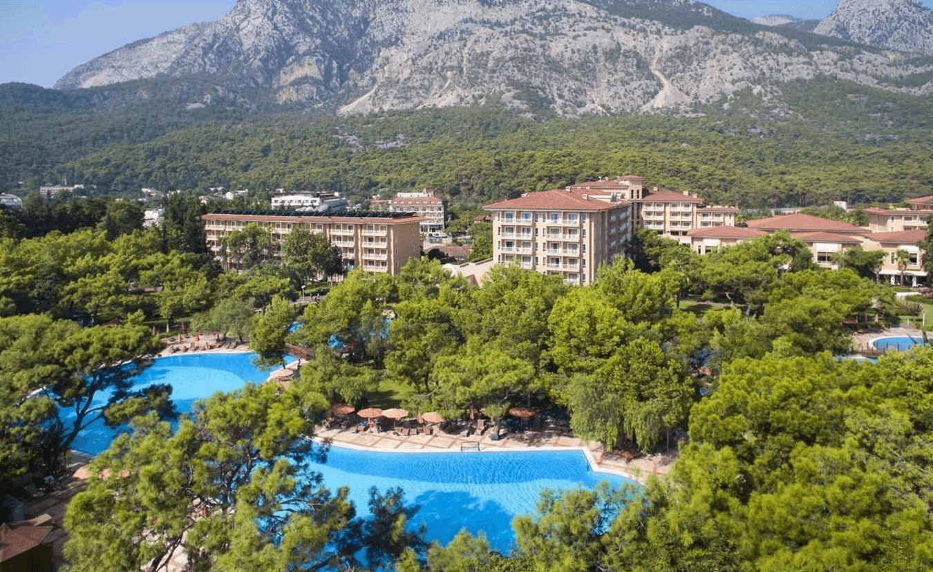 Отель расположился в живописном уголке Кемера, в окружении моря и гор. Гуляя по тенистым дорожкам и любуясь пейзажами, вы непременно увидите миниатюрные бары, где вам подадут свежие ароматные турецкие лепёшки и стакан освежающего айрана. Мимо такого пройти невозможно! После перекуса можно заглянуть на сеанс процедур в SPA-центр или отправится на пляж. Он здесь широкий и с мелкой галькой, поэтому вода в море кристально чистая.