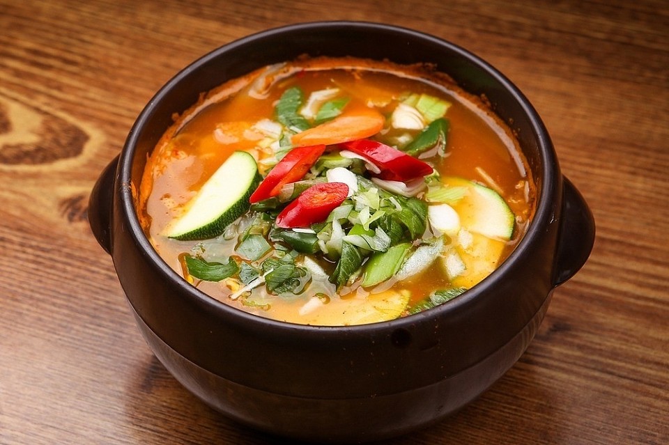 Прогуливаясь по улочкам Сеула, вы легко отыщите десяток ресторанов, в которых этот суп — фирменное блюдо. Идеальное время, чтобы прокатиться на этом гастро-аттракционе — утро после веселой вечеринки. Знатоки говорят, что он идеально лечит похмелье. Горячее, острое и сытное блюдо моментально избавит вас от всех негативных последствий диких танцев и линейки крепких шотов.