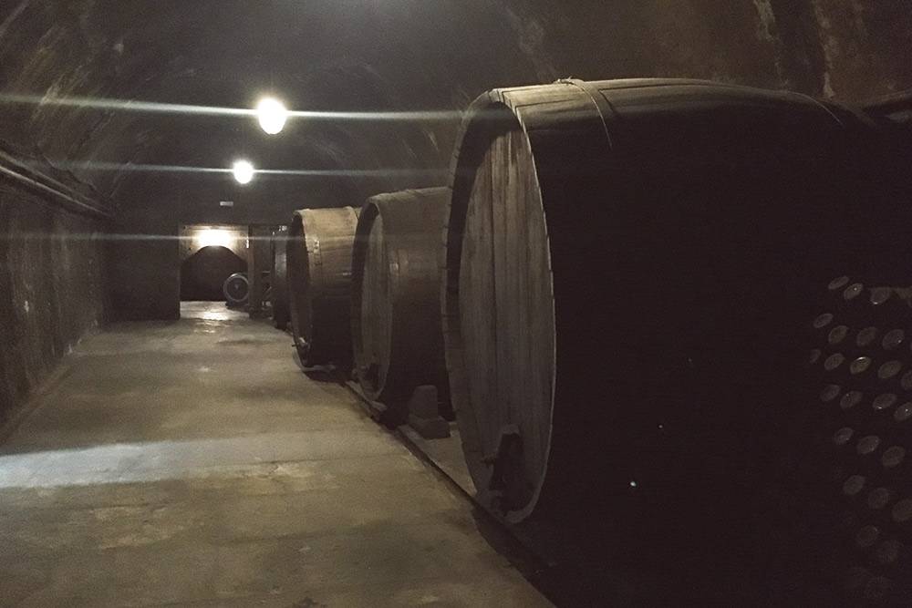 Эти старые бочки — музейные экспонаты. Сейчас вино выдерживают в новых, но таких же огромных. Чтобы сфотографировать пустой тоннель, нам пришлось отстать от группы. Потом мы чуть не заблудились