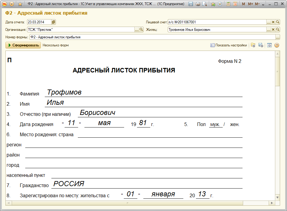 Адресный листок прибытия сам гражданин по общему правилу не заполняет. А должностные лица, ответственные за прием и передачу в регистрационные органы документов, – да. Он направляется одновременно с заявлением о регистрации по месту жительства. Или месту пребывания. Что такое место жительство, а что закон называет местом пребывания, на сайте мы опубликовали.