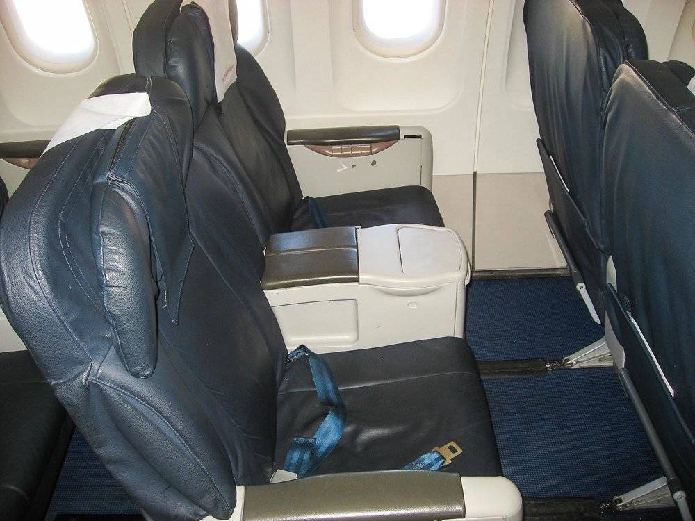 6 ряд (или 3) – места эконом-класса, находящиеся перед перегородкой между классами. Ряды с 8 по 10 (с 12 по 14) расположены вдоль аварийных люков (по обе стороны корпуса самолета). Все остальные ряды кресел являются обыкновенными стандартными местами бизнес-класса. Туалеты расположены позади 24-25 (29-30) рядов.