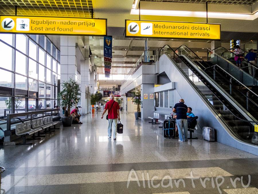 На территории аэропорта несколько пунктов обмена валют. Они обозначены табличками «Mejačnica». Один из них находится сразу после зоны паспортного контроля, в том же зале, где получаете багаж. На выходе из аэропорта тоже есть обменник.
