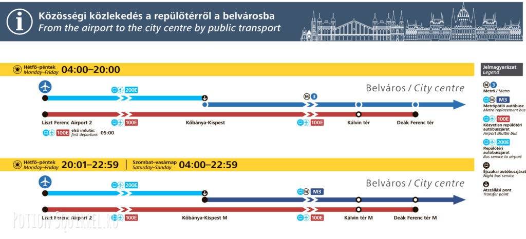 Схема общественного транспорта от центра Будапешта до аэропорта