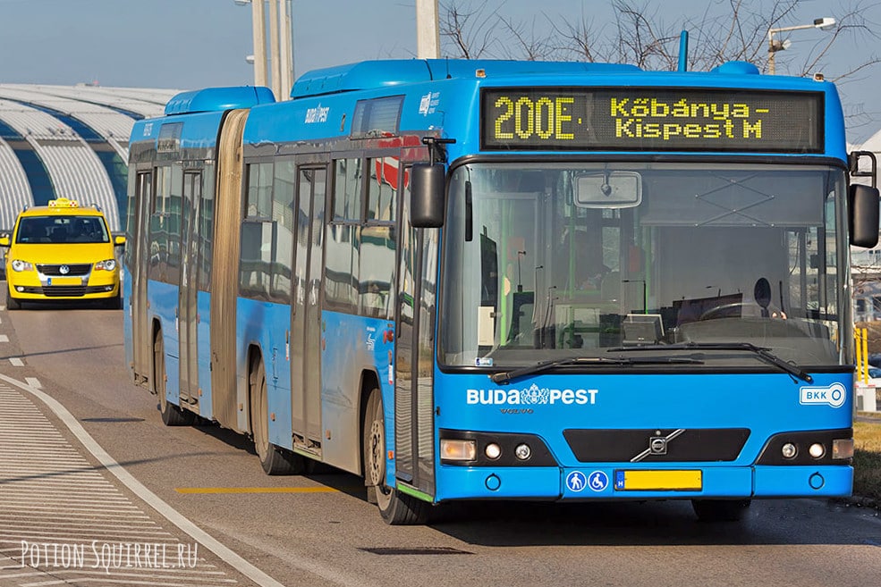 Вариант с автобусом 200Е — самый бюджетный. Доступен данный маршрут ежедневно с 4 утра до 23 ночи (с 23 часов и до 03:20 утра ходит до остановки метро Határ út). Ходит регулярно каждые 7-15 минут в зависимости от времени суток. Остановка находится прямо у выхода из Терминала слева. Ищите ярко-синий автобус, с надписью 200Е Kőbánya-Kispest (Кёбанья-Кишпешт).