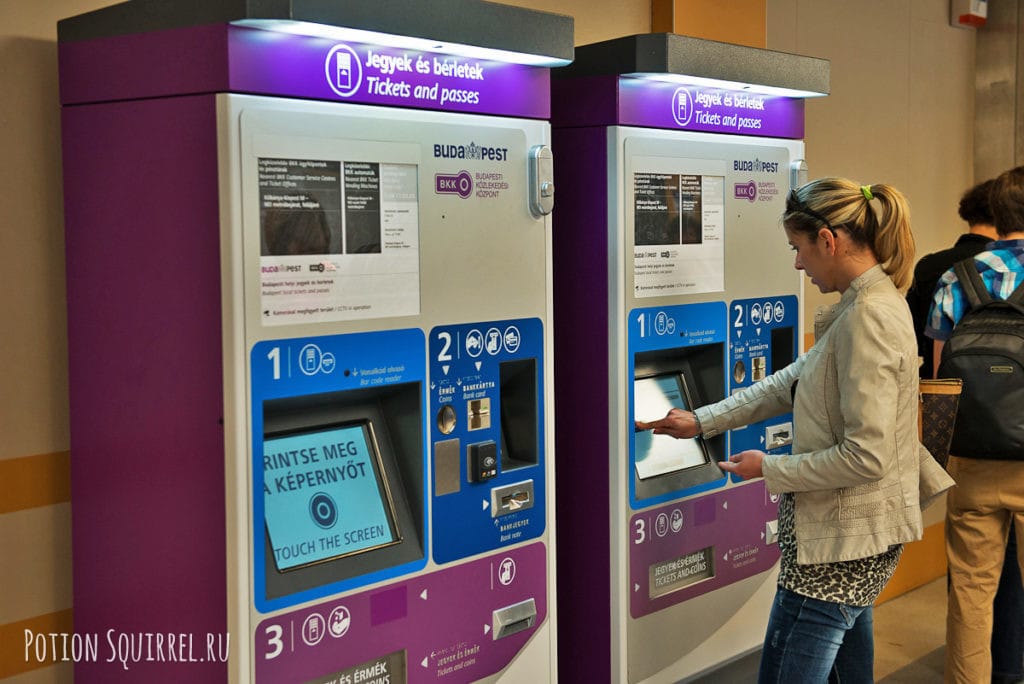 Билетным автоматом пользоваться очень просто. Есть меню на многих языках, в том числе на русском. Автомат принимает только форинты, причем монеты и купюры небольшого достоинства — с крупных может не оказаться сдачи. Если нет местной валюты, платите банковской картой.