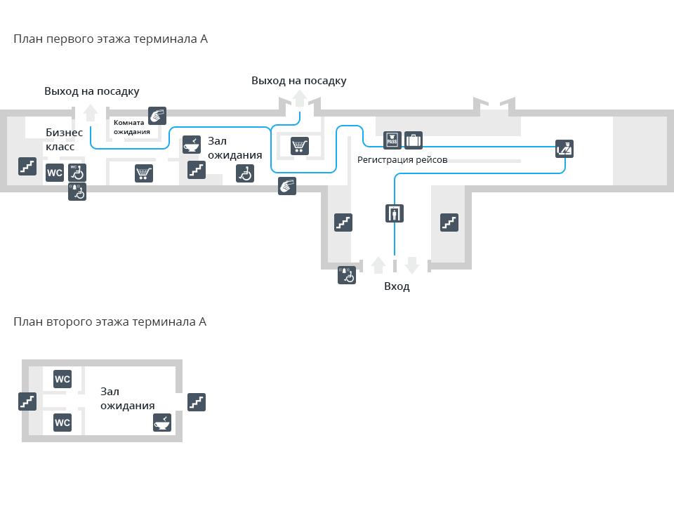 Функционирует условная комната матери и ребенка. Здесь могут находится матери с маленькими детьми до 4 часов подряд, а также обслуживаются женщины на второй половине беременности, пассажиры с детьми до 7 лет и дети-инвалиды до 14 лет. Если в комнате есть места, то могут находиться также пассажиры с детьми до 8 лет.