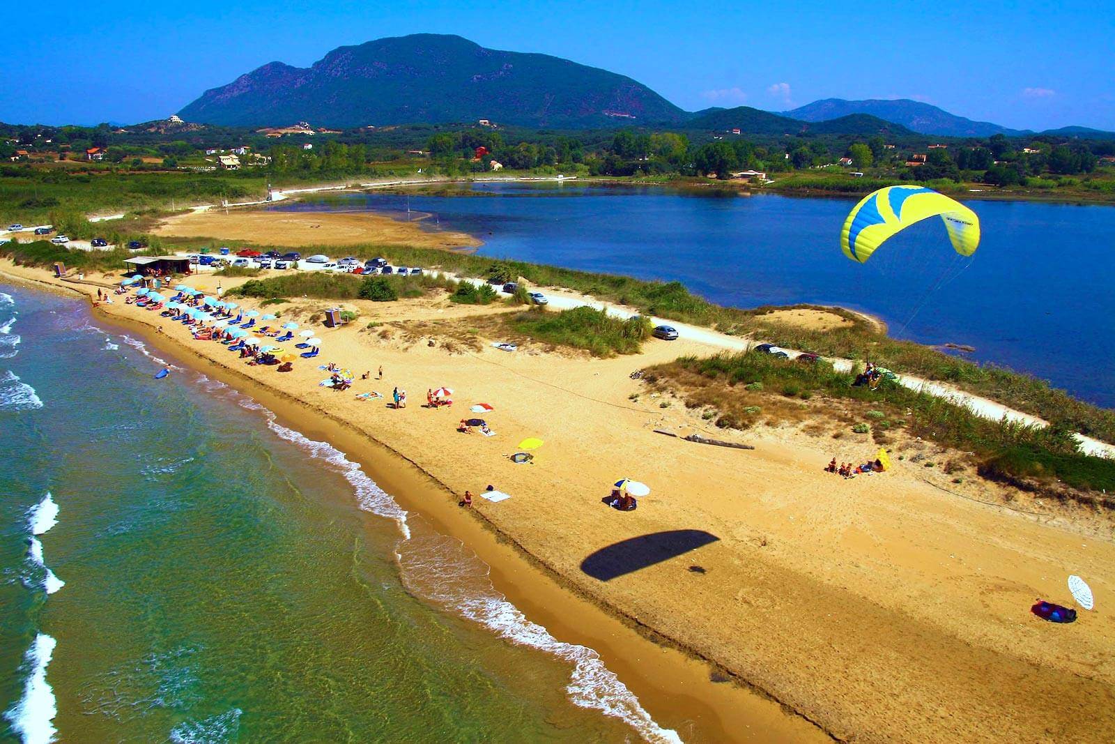 Огромное песчаное пространство, расположенное между Ионическим морем и озером Кориссион, называется Халикунас. Оно расположено на юго-западе острова. Очень широкое, полностью песчаное побережье способно вместить большое число отдыхающих. Это прекрасное место для досуга: мелкий песок под ногами, плавный спуск в воду, много простора.