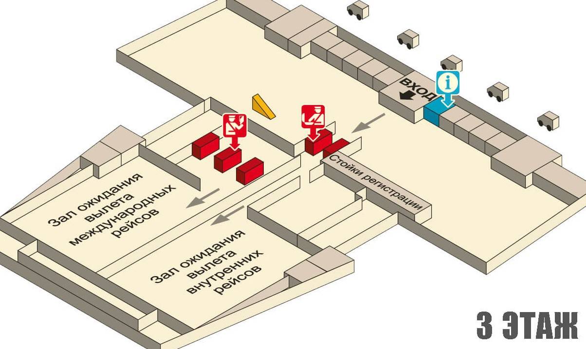 На 3 этаже находятся регистрационные стойки, отделение таможенного досмотра, залы ожидания самолетов, а также офис, где предоставляют необходимую информацию всем желающим туристам.