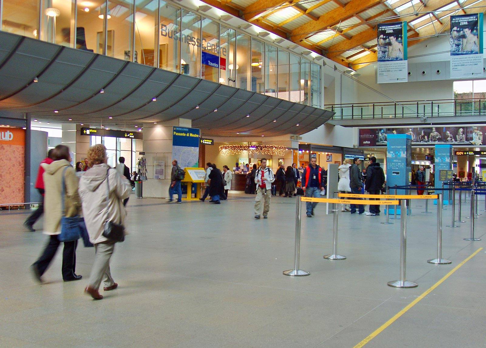 Чтобы доехать до Венеции на поезде, сначала надо добраться от аэропорта до железнодорожной станции в городе Тревизо (Treviso railway station). Это можно сделать на городском автобусе №6. Его остановка располагается справа от выхода из терминала аэропорта, на улице Via Noalese.