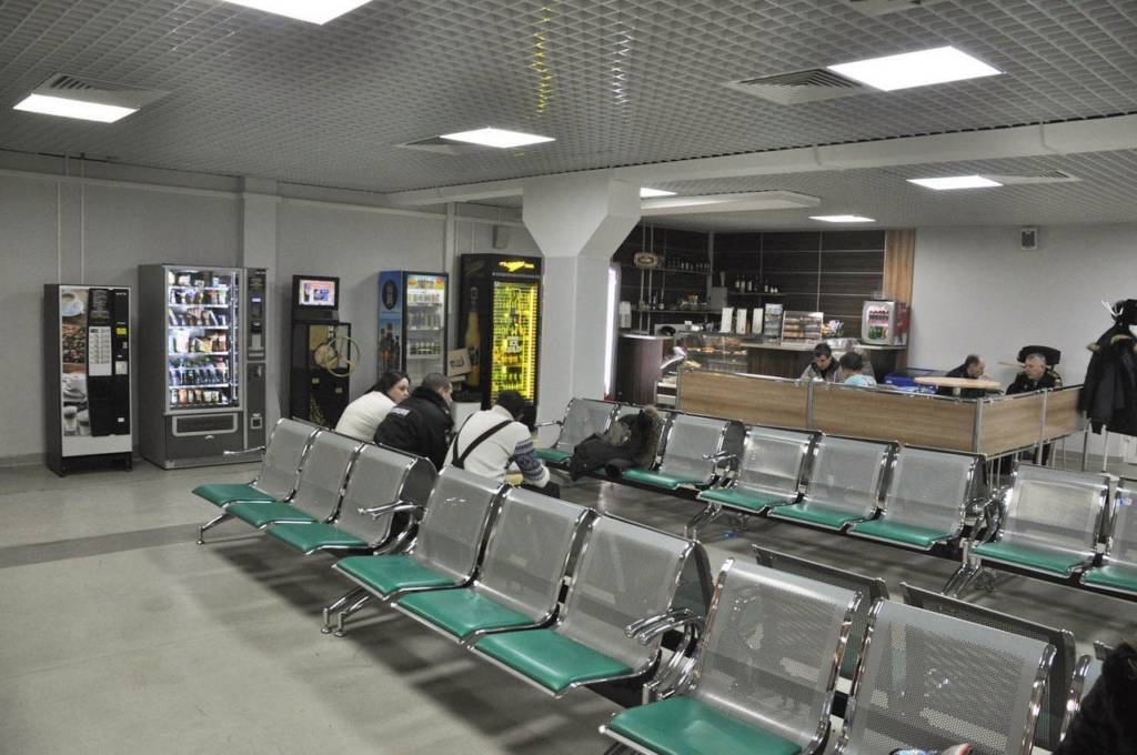 - Здание, где пассажиры ожидают вылета. Отсюда их забирают на посадку самолет. Посадка происходит из автобуса с перрона, а не через рукав, так что в непогоду может быть не очень комфортно.