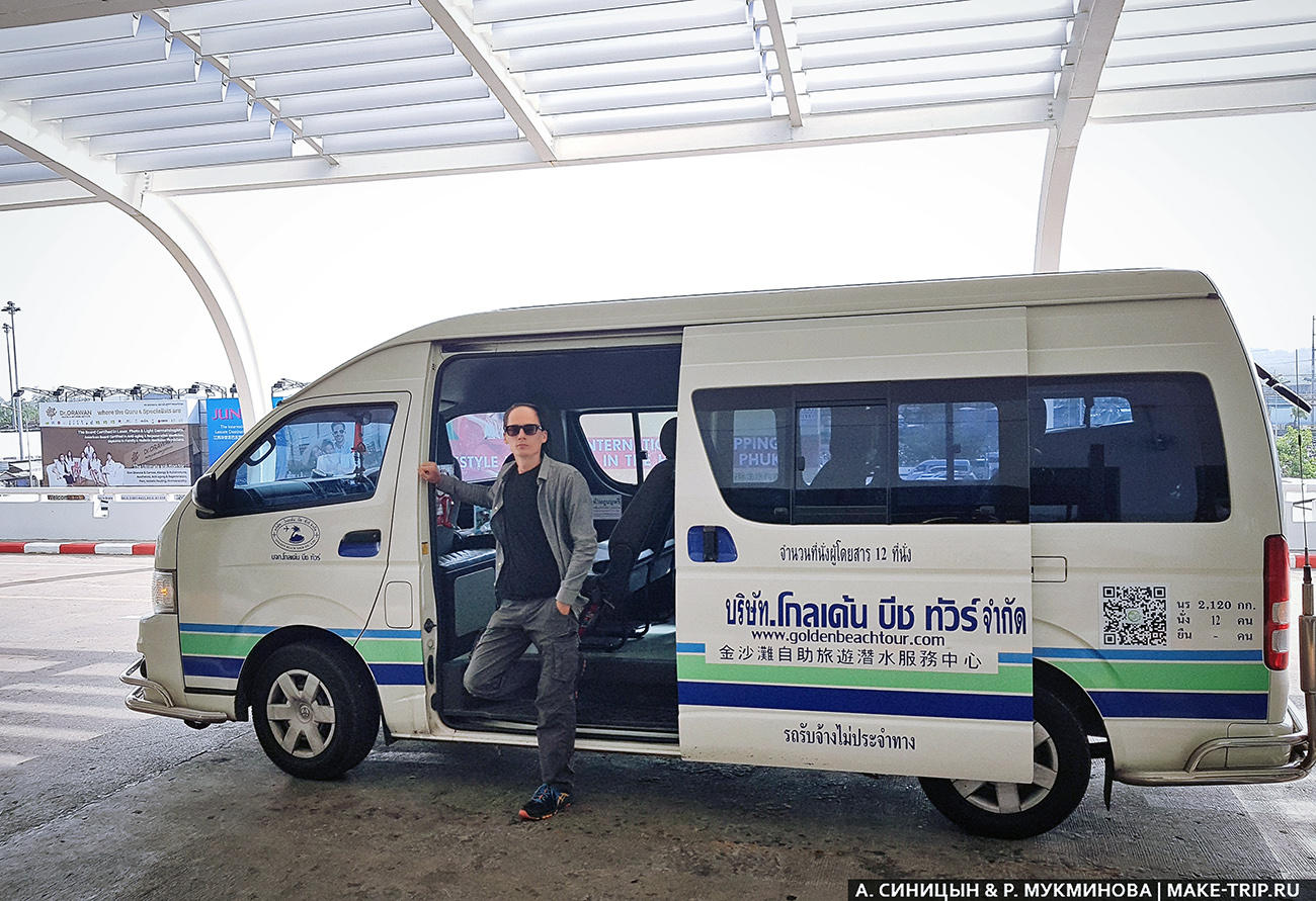 Время работы: 6:00—21:00 - Минивен (групповой трансфер): на выходе из аэропорта нельзя не упереться в стойки с зазывалами, предлагающими трансфер до отеля. Набирается маршрутка на ≈ 10 человек, она доезжает до «терминала», где пассажиров рассаживают по другим маршруткам, в зависимости от пляжей, и везут до отеля. Время в дороге 1,5—2 часа.Стоимость: 180 бат