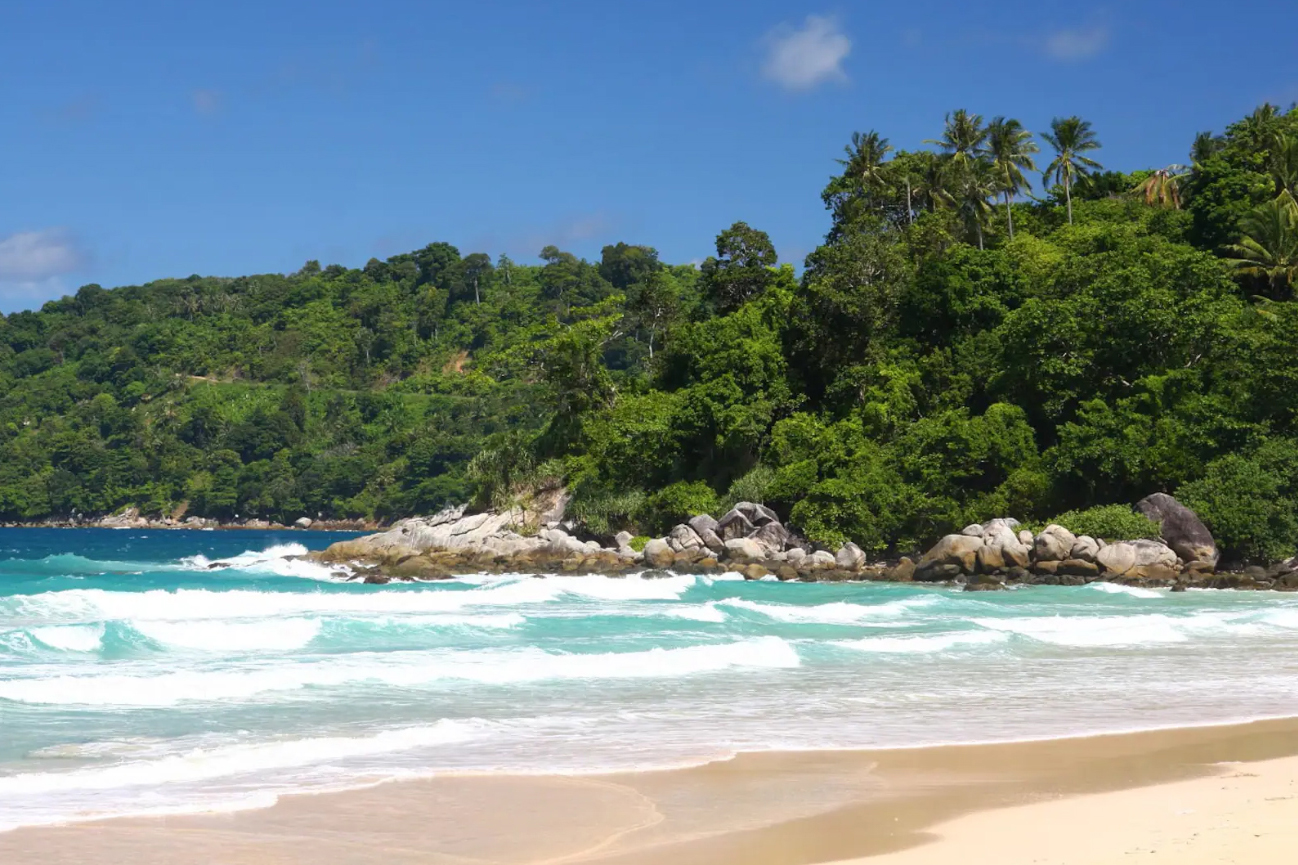 Просторный красивый пляж в бухте на северо-западе Пхукета манит тишиной и возможностью спокойного отдыха, а для любителей тусовок открыты клубы и бары. Береговая линия протяжённостью 800 метров покрыта мелким светлым песком, здесь растут деревья, в тени которых можно укрыться, вода чистейшая, бирюзового цвета. Из досуга и услуг: массаж, катание на гидроциклах и парашютах, сёрфинг. Цена аренды шезлонгов и зонтика на Сурине чуть выше – от 150 до 300 ТНВ.
