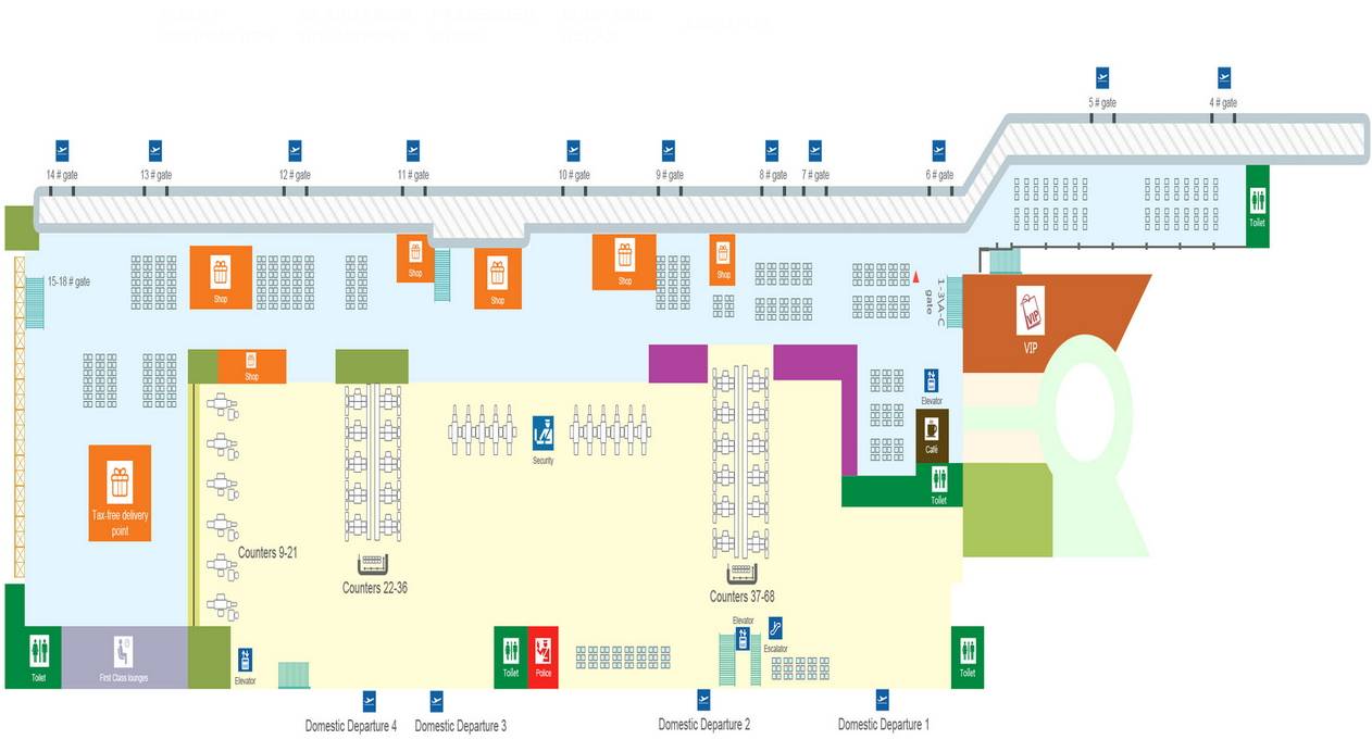Вы можете ознакомиться со схемой терминалов аэропорта Саньи, чтобы на месте лучше ориентироваться. Карту аэропорта Саньи вы можете видеть ниже.