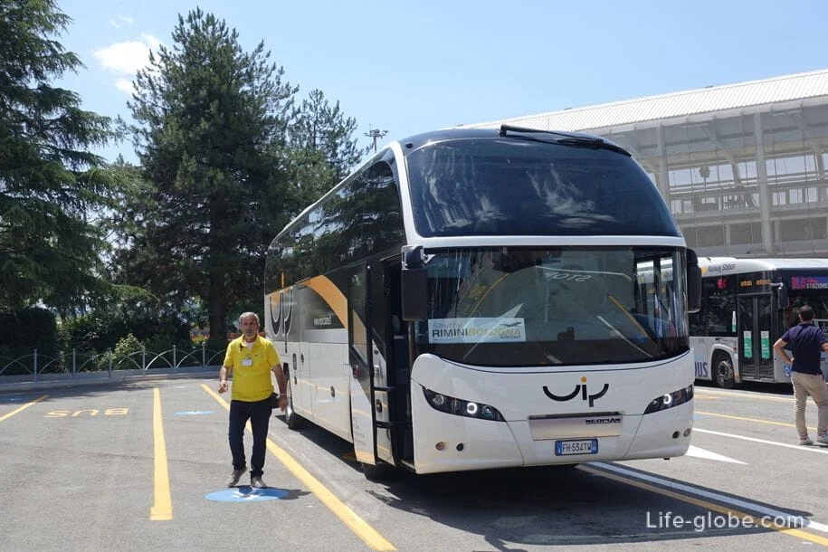 Автобус-шаттл – единственный общественный транспорт, на котором можно напрямую добраться из аэропорта Болоньи в Римини (также как из Римини в аэропорт Болоньи).