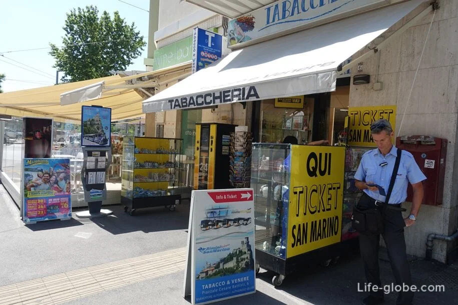 В Римини автобус делает две остановки. Первая носит название RIMINI Via Fada и находится не в центре города. Вторая и самая востребованная расположена напротив железнодорожного вокзала Римини. В Табаччерии возле остановки можно приобрести билеты.