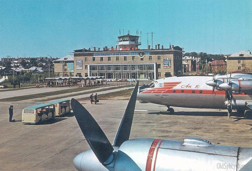 - 1959 год — В декабре в Сыктывкар прибыл первый турбовинтовой многоместный (132 пассажира) самолет Ан-10. С 1960 года на этом лайнере начали выполняться регулярные рейсы в Москву и другие города России