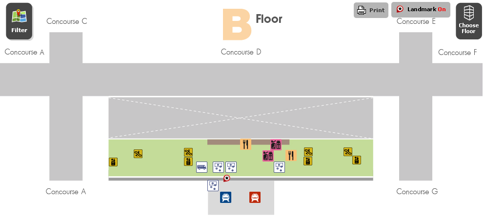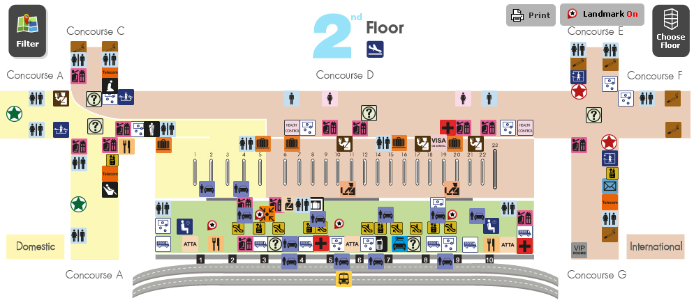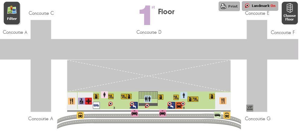 Тут можно поймать такси, купить билет на автобус, снять/обменять деньги и воспользоваться помощью справочной службы. А еще здесь расположено самое дешевое кафе в аэропорту – Magik Food.
