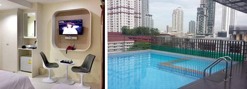 Комнаты в отеле небольшие, но чистые. К тому же, на крыше есть бассейн – в жару, после прилета это будет в самый раз. Отдыхаем и заодно привыкаем к видам безумного Бангкока:)