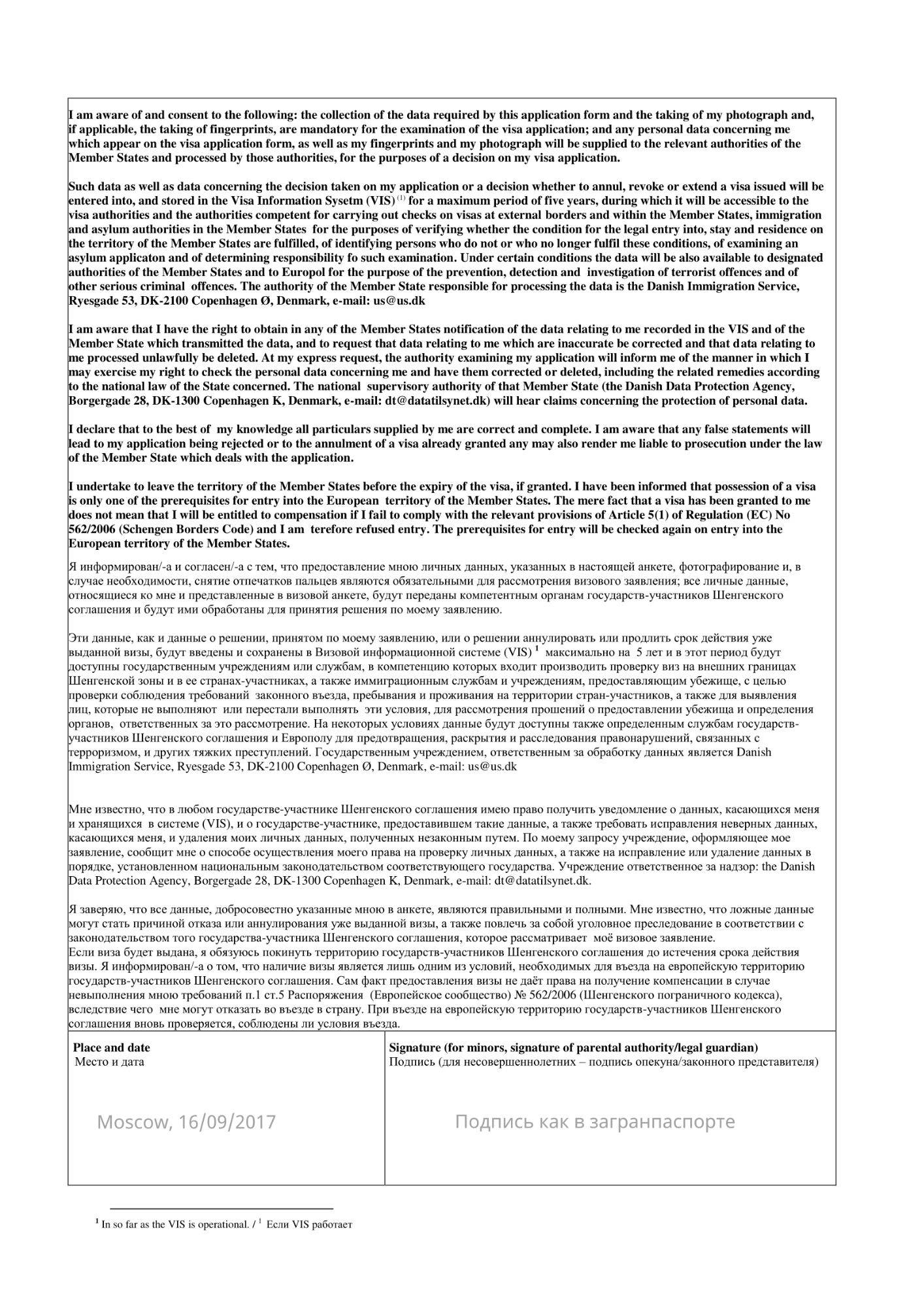На 4-м листе внизу указываются дата и место составления, проставляется подпись (она должна совпадать с подписью в загранпаспорте).