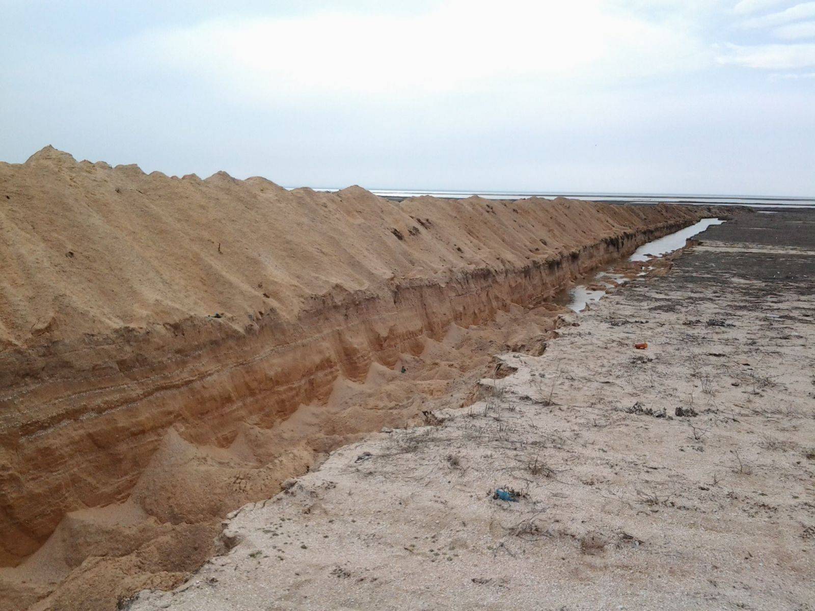 В средней части косы можно увидеть следы советских карьеров, где в свое время пытались наладить добычу ракушечника. Промышленники вовремя остановились, поняв, что их деятельность с огромной вероятностью приведет к разрушению всей Арабатской стрелки и может спровоцировать экологическую катастрофу в Азовском море. Оставшиеся котлованы было принято не оставлять без дела – здесь организовали рыбное хозяйство, которое залило туда воду и стало разводить там рыбу.