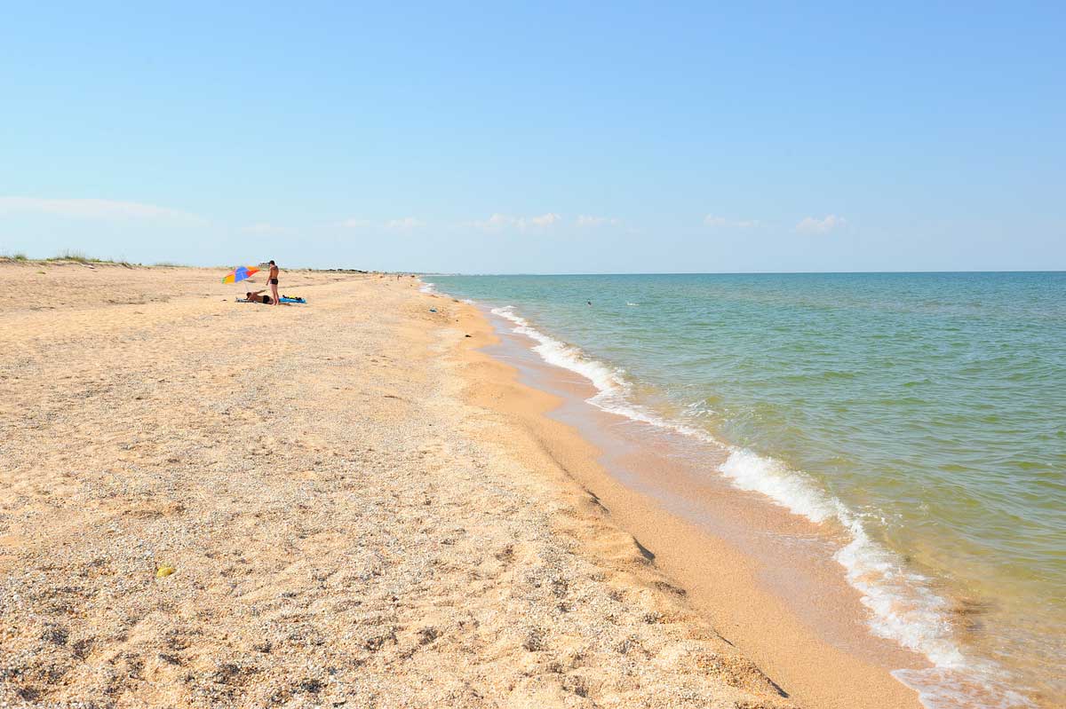 Херсонская часть Арабатской Стрелки — это 50 километров широких пляжей из смеси песка и мелкой ракушки. Здесь нет мысов, бухт или других образований, которые нарушали бы ровную полосу прибоя от Генгорки до Стрелкового.