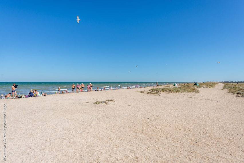 Поставить навес, расстелить полотенце для загара или построить песчаные замки можно в буквальном смысле в любом месте косы — все пляжи находятся в коммунальной собственности и открыты для доступа. Разве что возле территорий баз отдыха количество отдыхающих не всегда способствует спокойному времяпрепровождению.