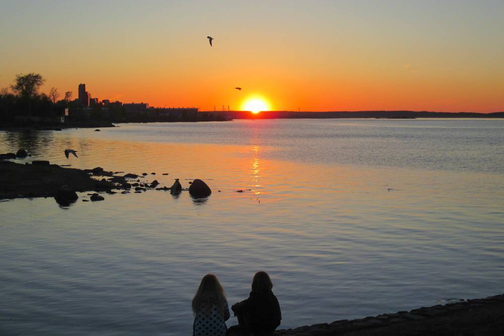 Мы жили в отеле «Онежский замок» у озера. Отель хороший, оформлен в национальном стиле. По вечерам наблюдали красивейшие закаты