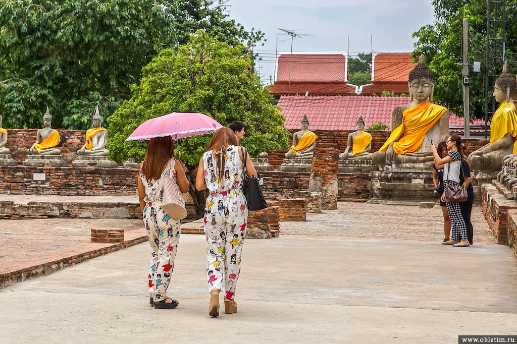 Посещение буддийских храмов предполагает некоторые требования к одежде — она должна покрывать плечи и колени, это также стоит предусмотреть.