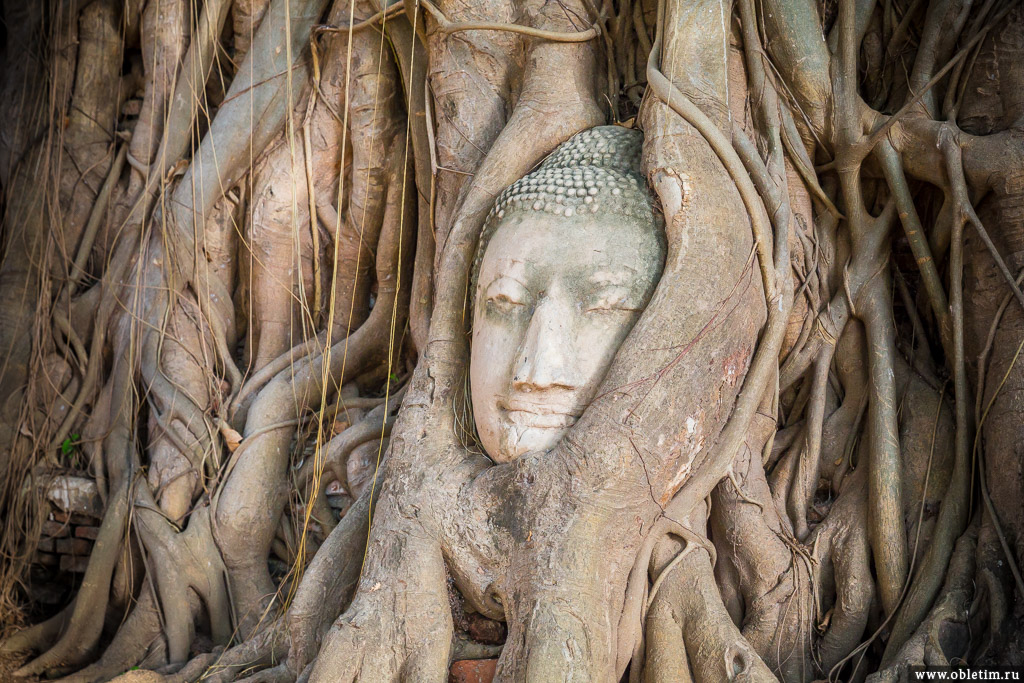 Знаменитая голова Будды вплетённая в корнях дерева.