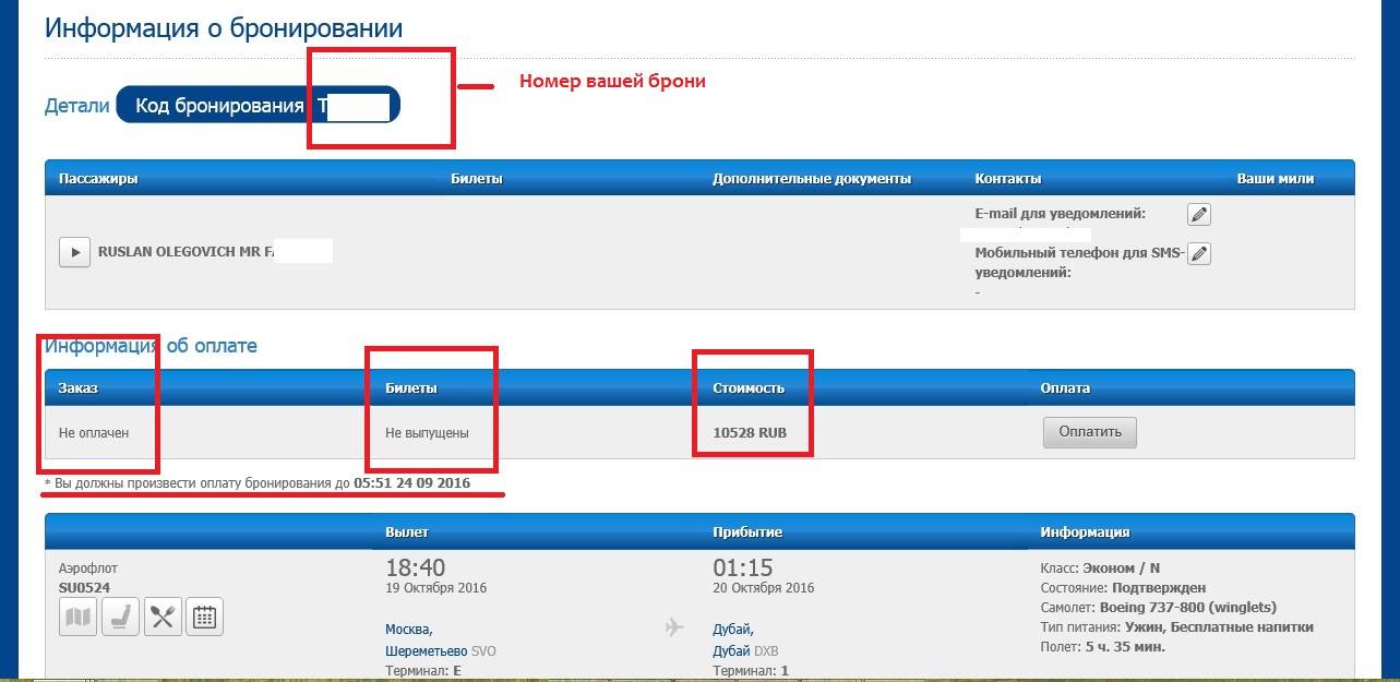 Система выдаст вам довольно исчерпывающую информацию по вашему бронированию: