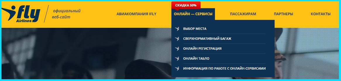 - Онлайн-сервисы. Эта секция несет наибольшую пользу для пассажиров. Через этот раздел можно выбрать место, изучить информацию на онлайн-табло, разобраться с нюансами работы каждой из предоставляемых услуг. Здесь же пользователям авиакомпании Ай Флай доступна онлайн-регистрация.