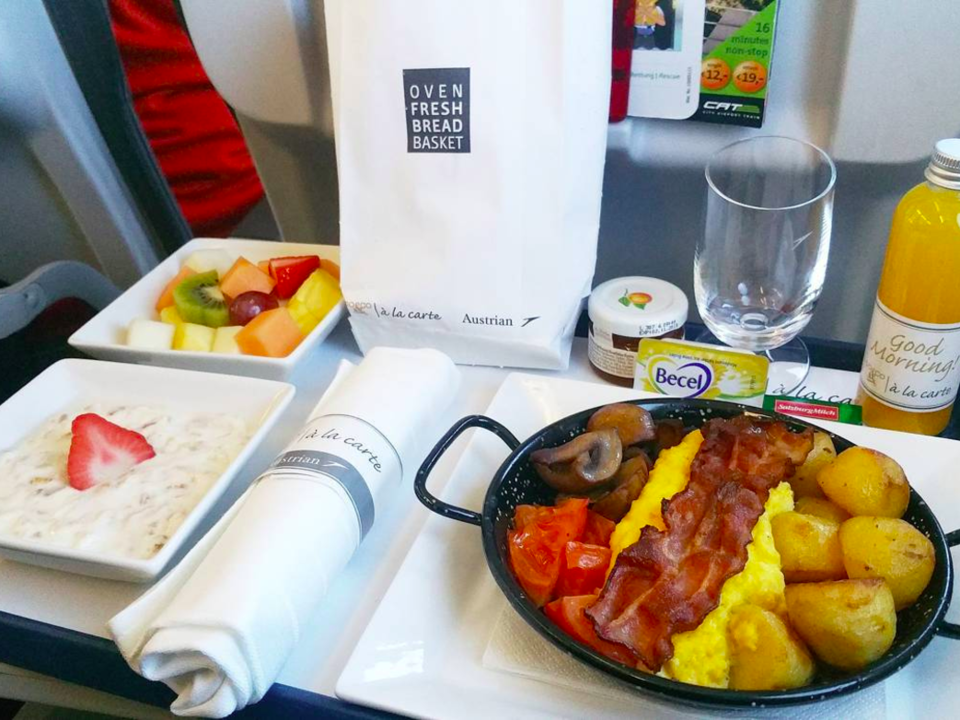 Режим питания пассажиров в Austrian Airlines зависит от класса обслуживания, направления и длительности рейса. На средних и дальних рейсах пассажирам всех классов предлагается 14 видов специального питания. Любое меню, например, детское или кошерное питание, в Austrian Airlines нужно заказывать минимум за сутки до вылета. Детям до 2 лет спецпитание (смесь) заказывать не нужно – в салоне самолета оно всегда есть.