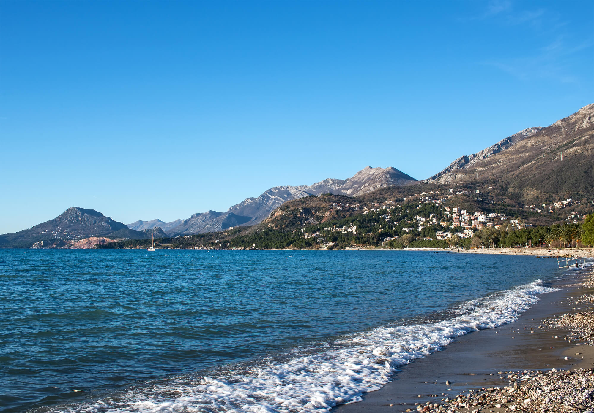 Городской пляж – название довольно условное, но я включил в него все пляжи Бара, которые начинаются от порта и тянутся с перерывами до пляжа Жукотрлица (после мостика через впадающий в море ручей), о котором расскажу ниже. Вдоль всего пляжа проходит набережная, поэтому тут много кафе и магазинов, есть лежаки, аттракционы и яхт-клуб.