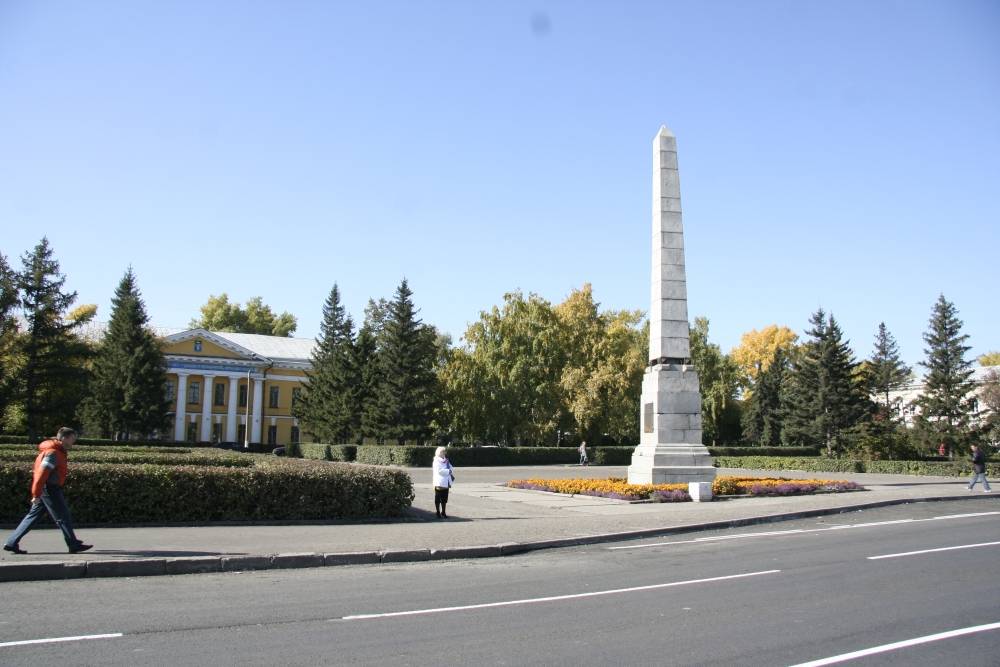 Посередине площади, в 1825 г., поставили 15 м гранитную памятную стелу. Это первый российский обелиск, посвящённый человеческому труду.