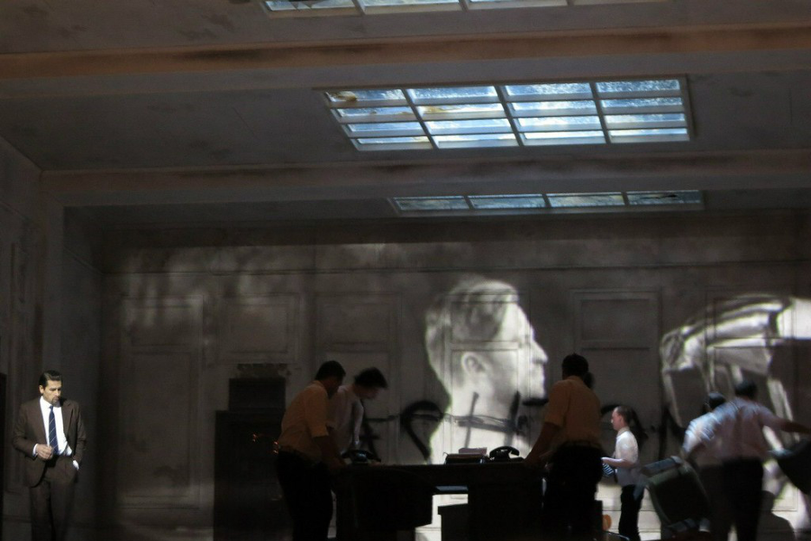 Все три действия происходят в таких сценических руинах. Как поясняется постановщиками, действие оперы перенесено в США в шестидесятые годы, прототип Лючии – Жаклин Кеннеди, Эдгар – Джеймс Дин. На протяжении всего действия в обиходе главных героев довольно много оружия, мне лично аналогия с Кеннеди показалась достаточно натянутой: скорее создавалось впечатление гангстерской драмы с враждующими двумя кланами и с преобладанием жестокой патриархальности. Именно такому миру пытается противопоставить себя Лючия, но, в итоге, находит свою свободу в безумии и смерти.