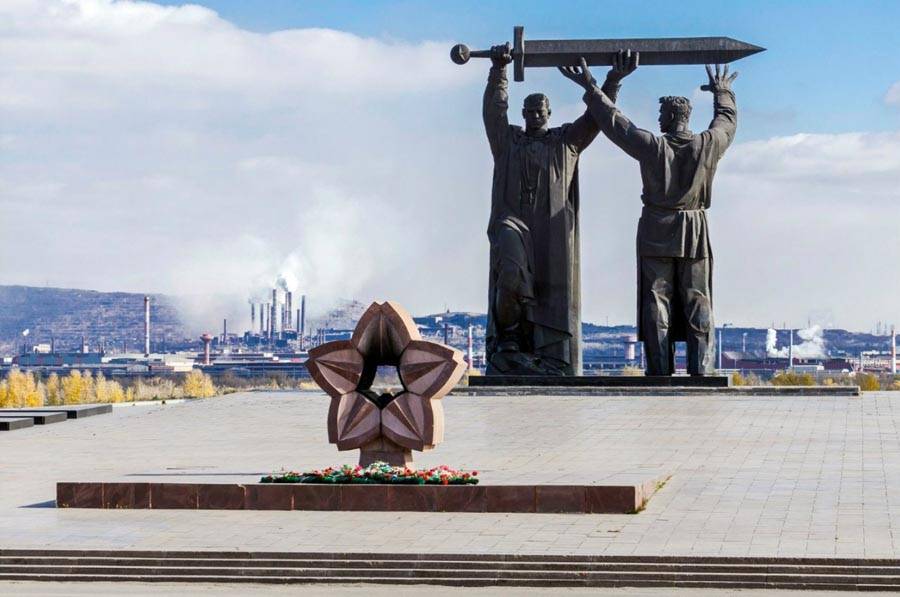 Из того, что можно и нужно посмотреть в Магнитогорске это монумент в парке Победы. Установленные на искусственной возвышенности фигуры рабочих поднимают над головой меч, олицетворяющий помощь Уральского города фронту. Считается, что композиция первая из уникального триптиха, выполненного советскими скульпторами. Такой же меч поднят над головой скульптуры «Родина-мать» в Волгограде и его держит в руках советский солдат в Берлине. У монумента горит вечный огонь, и установлены мемориальные доски с именами жителей города, погибших в Великой Отечественной войне.