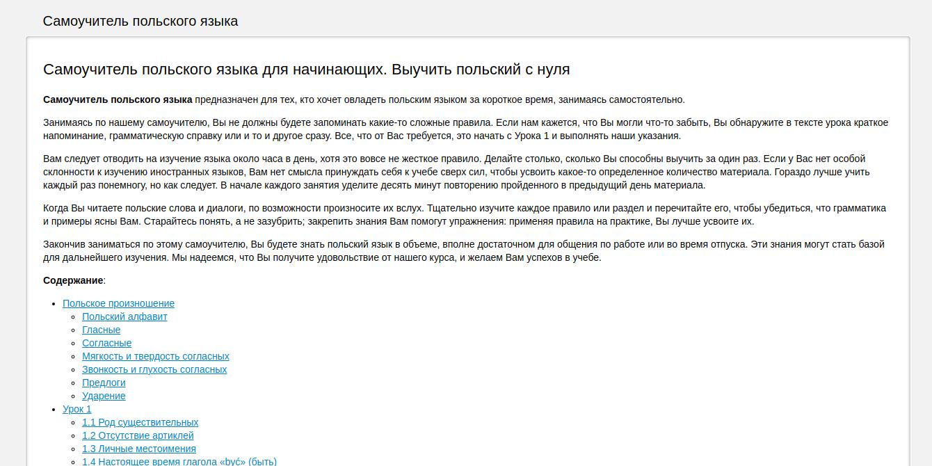 Обучающая программа: уроки, предназначенные для изучения польского языка.