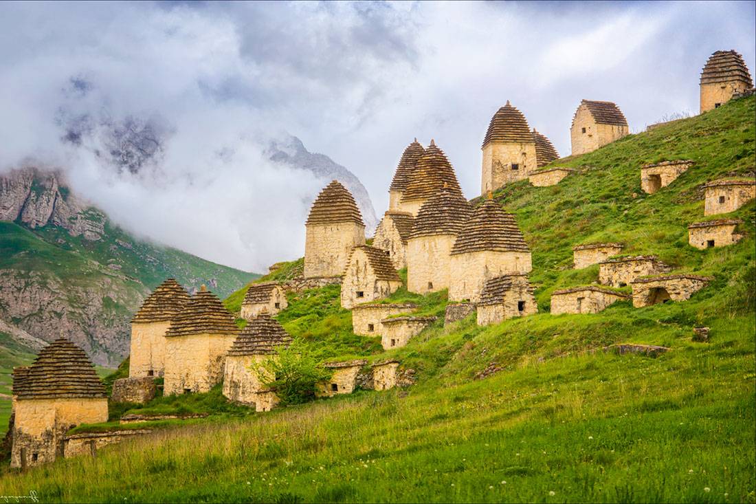 Даргавс называют городом мертвых из-за того, что в старину целые семьи с детьми и стариками уходили сюда, чтобы умереть и не заразить соседей и близких чумой (одно время болезнь просто свирепствовала в здешних местах). Чтобы добраться сюда, нужно проехать по крутому горному серпантину. Сегодня здесь нет людей, которые жили бы в селе постоянно.
