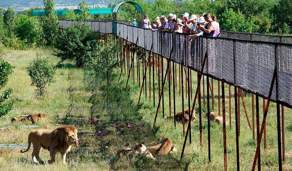 На огромной территории парка проживает более 60 львов различных видов. За ними можно наблюдать с мостов, протяженность которых составляет около 1 км. Лучше провести тут не менее суток, т. к. львы могут укрываться от солнца и не будут доступны в поле зрения.