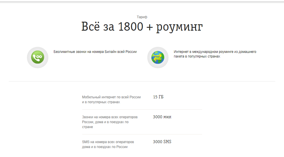 | Трафик по всей России в сети Билайн | 15 Гб |
