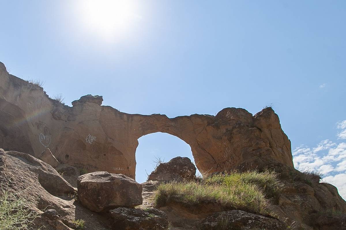Если вы ищете, в какое не очень удаленное от города, но интересное место съездить на один день, отправляйтесь к Горе Кольцо – одной из самых известных природных достопримечательностей, расположенных недалеко от Кисловодска. Скальная арка круглой формы диаметром около 8 метров образовалась из грота в результате выветривания и вымывания мягкой породы. Она расположена на вершине небольшой горы, а точнее, одного из отрогов Боргустанского хребта.